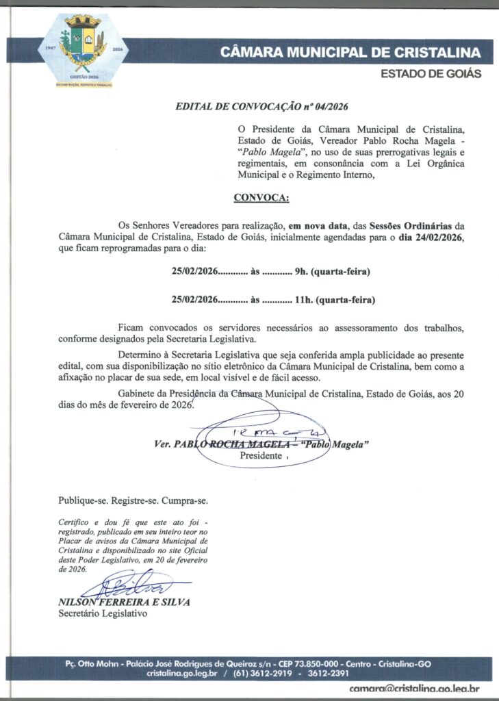 EDITAL DE CONVOCAÇÃO n°04/2026
