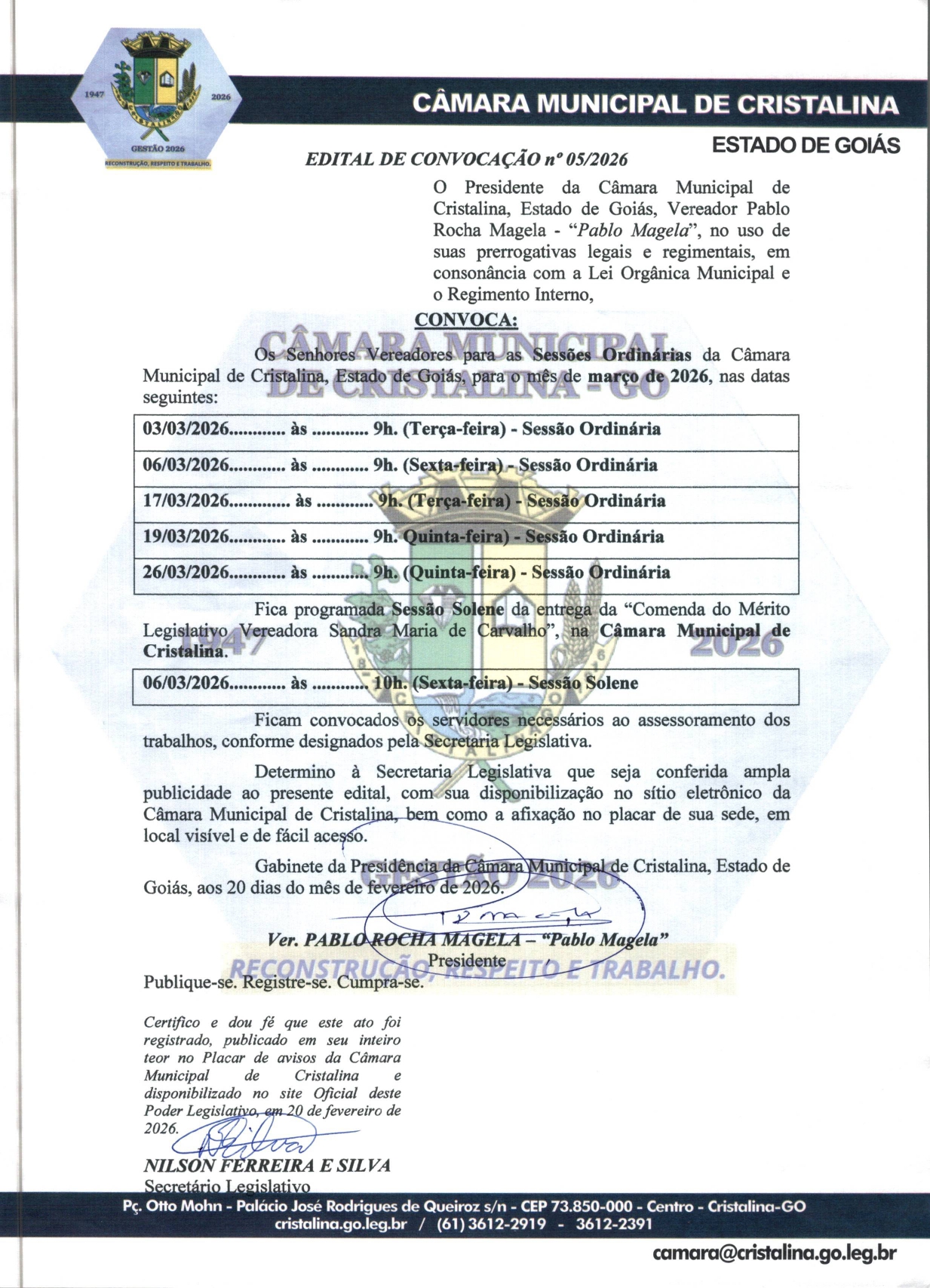 Na manhã de ontem (03 de Junho de 2022), no plenário Fritz Monh da Câmara Municipal de Cristalina, foi implantado o Programa COM VIVER, no âmbito do poder legislativo. Programa vencedor do Prêmio Destaque Innovare 2021 idealizado pela juíza Dra. Priscila Lopes da Silveira e o juiz Dr. Thiago Inácio Oliveira da comarca de Cristalina.O Projeto de Resolução Nº 1/2022 foi aprovado por unanimidade durante a 21ª Sessão Ordinária nesta casa de leis.Participaram da cerimônia o Prefeito Daniel do Sindicato, os Juízes Dra. Priscila Lopes da Silveira, Dr. Thiago Inácio Oliveira, os vereadores Jean Eustáquio Magalhães Alves, Luciana Cândida Ribeiro de Aquino, Gilmar de Oliveira Matos, Marcos Fernandes Franco, Pablo Rocha Magela, Marcelo Rocha de Novais, José Marcelo Alves Borges, Juscélio dos Santos, dentre outras autoridades civis, militares e eclesiásticas.